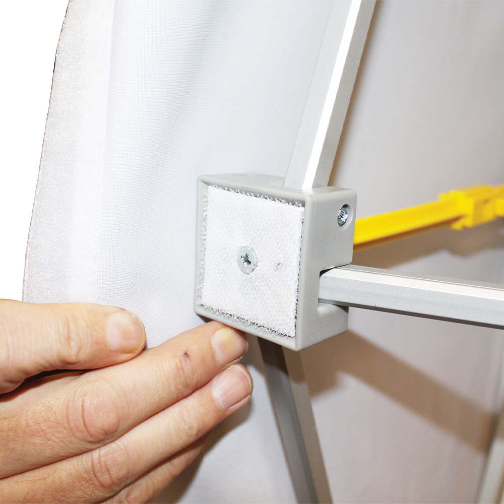 Die Textilfaltwand besteht aus Displaystoff, dieser hat das B1 Zertifikat für schwere Entflammbarkeit nach der in Deutschland geltenden Brandschutznorm. Somit ist er optimal für Innenanwendungen geeignet.