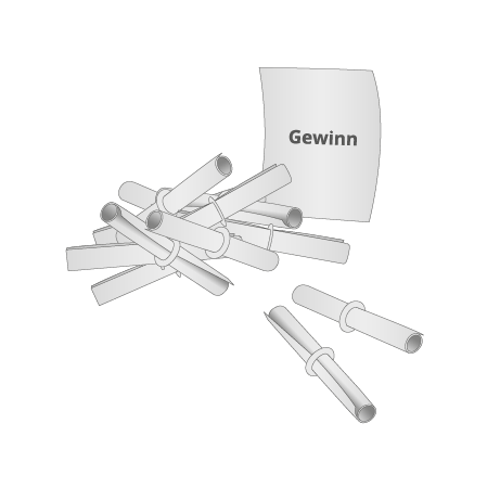 Schon fast 100 Jahre alt, aber noch immer Bestseller - die Röllchenlose von Medien Design Markwart in Bayern. Das liegt sicher an ihrer Einfachheit, am Rascheln in der Losbox und an der Spannung beim Öffnen der Lose.